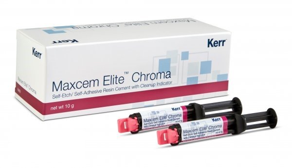Maxcem Elite™ Chroma ponúka farebný indikátor Color Cleanup Indicator. Cement je natoľko “chytrý” (smart), že Vás upozorní, kedy je potrebné odstrániť prebytky. Navyše je kompatibilný so všetkými nepriamymi rekonštrukciami, a širokou škálou dostupných materiálov (keramika, CAD/CAM a ďalšie).