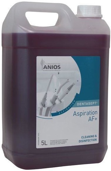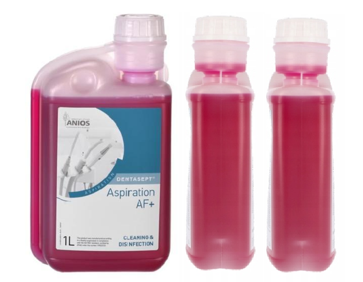Dentasept® Aspiration AF + je vysoko účinná koncentrovaná tekutina, ktorá je určená na denné čistenie a dezinfekciu všetkých odsávacích systémov, odlučovačov amalgámu a pľuvadiel.