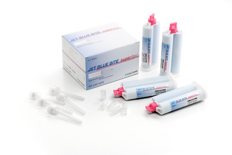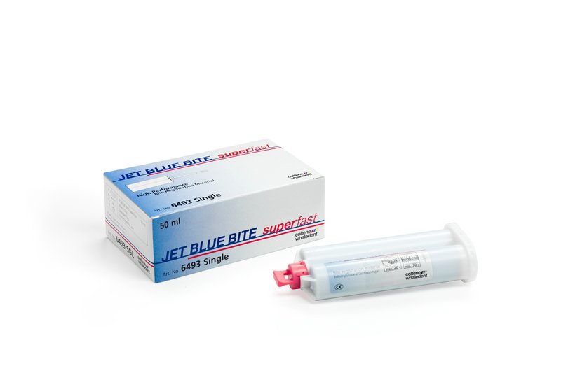 JET BLUE BITE je odtlačkový materiál na báze A-silikónu registráciu zhryzu jemnej konzistencie s výbornou presnosťou.