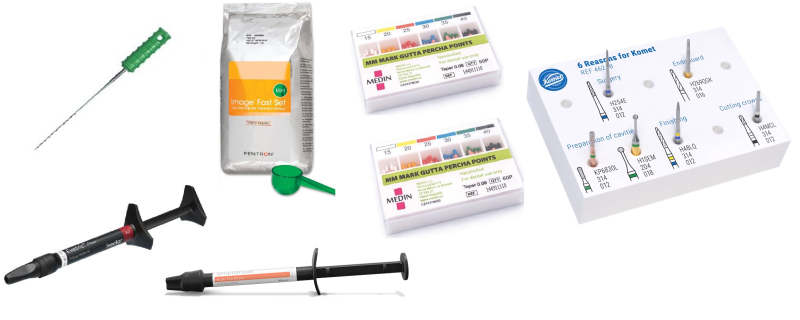 nervové ihly VDW + Image Alginate + Gutaperčové čapy 30/04 + Gutaperčové čapy 25/04 + Evetric Flow + SimpliShade Bulk Fill Flow + sada vrtákov "6 Reasons for KOMET" ( 195,90 €)