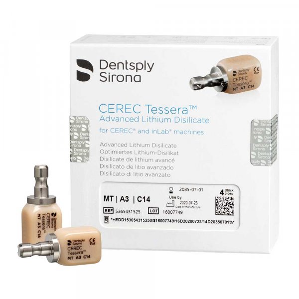 CEREC Tessera od Dentsply Sirona je prémiová lítium‑disilikátová keramika pre systém CEREC. Vyniká super rýchlym výpalom (cca 4:30 min), vysokou pevnosťou a prirodzenou estetikou.